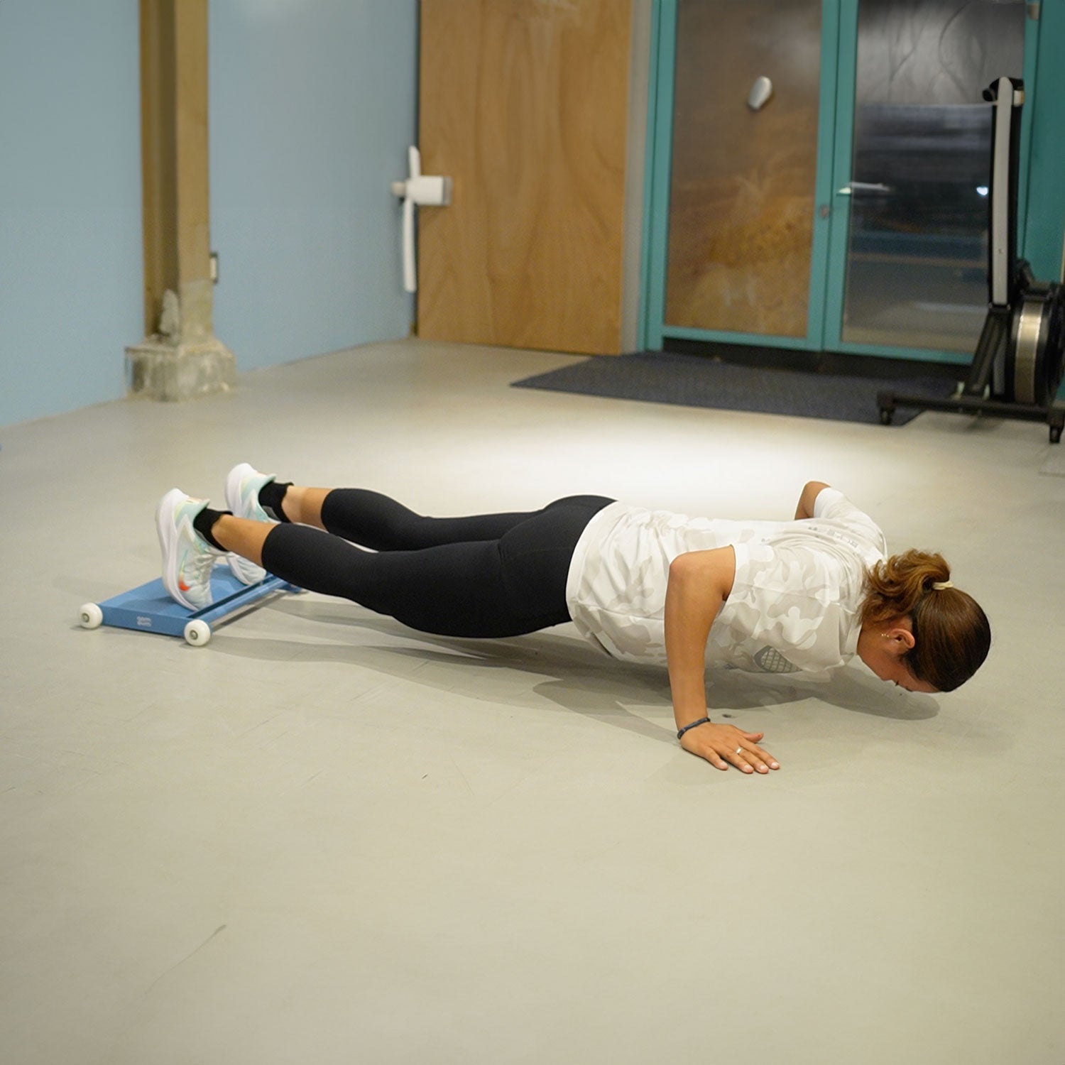 では、QOM Sliderに足を乗せて腕立てをしてみましょう